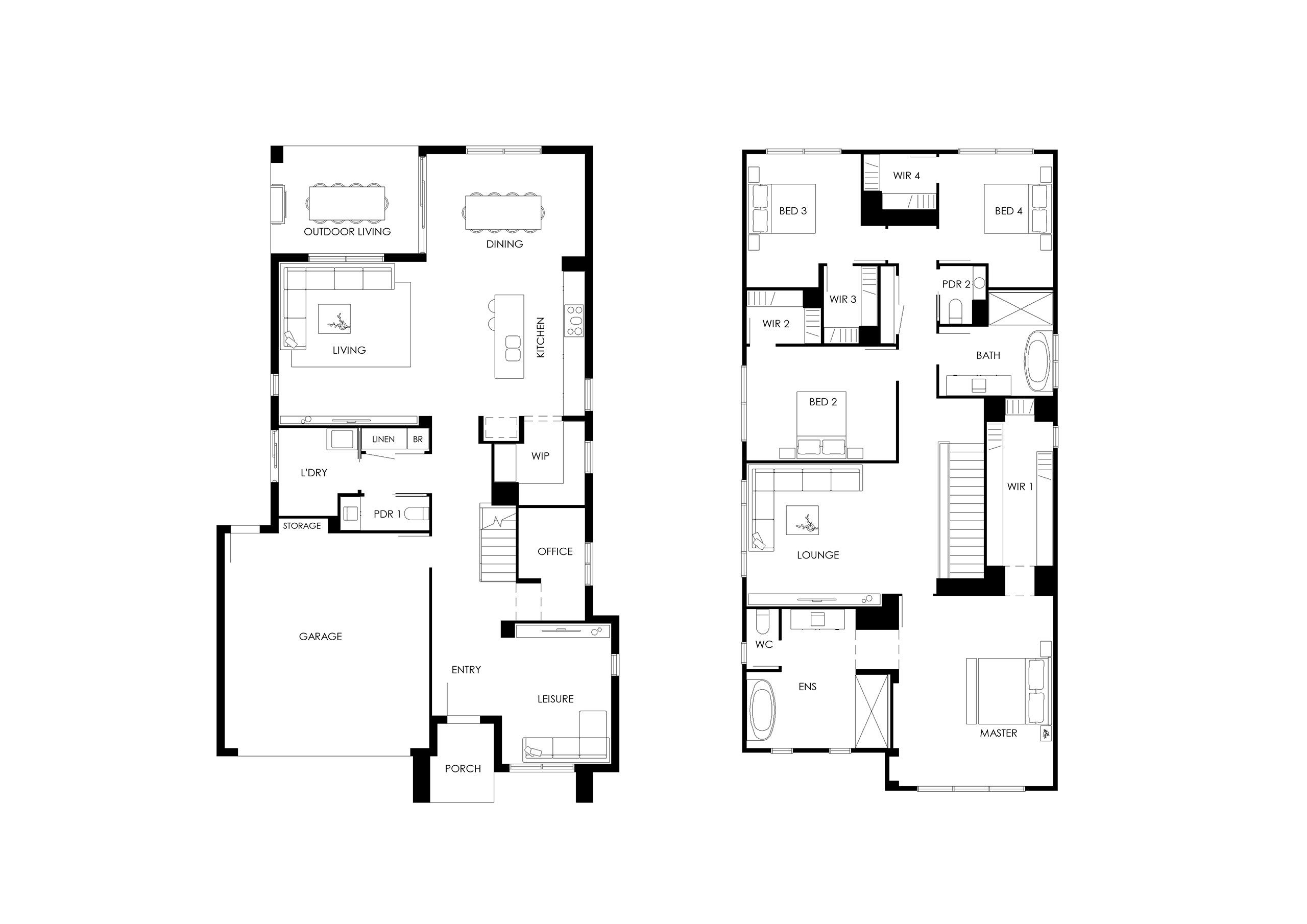 Upstairs, the master suite is a true sanctuary — featuring a luxurious ensuite with a back to wall bath, and plenty of room to upgrade with a double vanity and double shower. A separate toilet adds an extra layer of privacy. A large central lounge anchors the upper floor, creating a natural gathering space for the whole family. The kids’ bedrooms are equally well-appointed, each with their own walk-in robe, while the kids’ bathroom boasts a large vanity and shower.